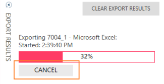 This panel displays the results of all ongoing and completed export operations. You can cancel an export anytime by clicking the Cancel button that appears to the right of a result while an export operation is in progress.