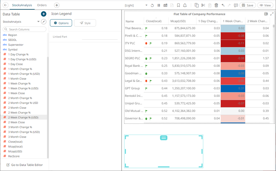 The icon legend is connected to its parent visualization and the link between them is displayed. The icon variables are retrieved from this visualization and displayed in the legend.