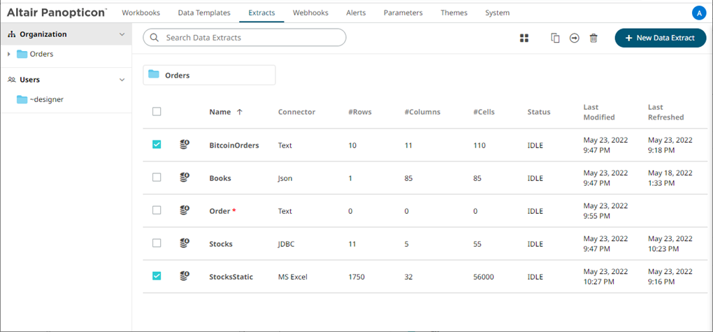 1. Check the box of data extracts either: