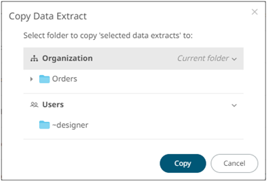 Users with a Designer role are allowed to copy data extracts to another folder or subfolder where they have permission.