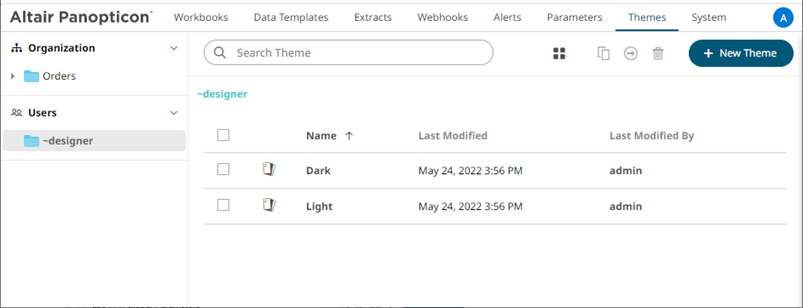 Users with a Designer role are allowed to copy themes to another folder or subfolder where they have permission.