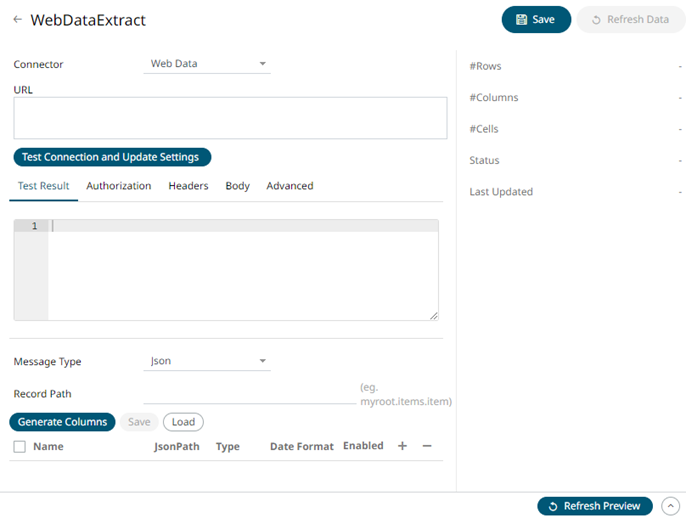 1. On the New Data Extract page, select Web Data in the Connector drop-down list.