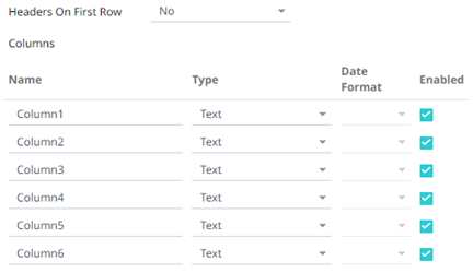 · Select No to force not picking first row as headers. This will auto generate all column names.