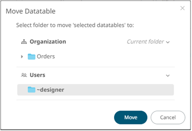 The Move Datatable dialog displays with the folder or subfolders the user is allowed to move the data template.