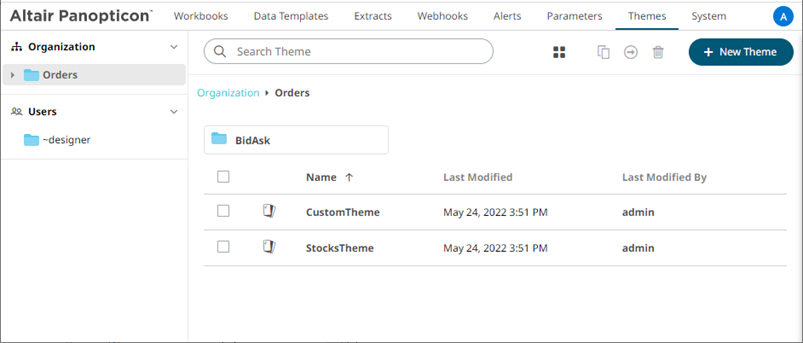 Users with a Designer role are allowed to move themes to another folder or subfolder where they have permission.