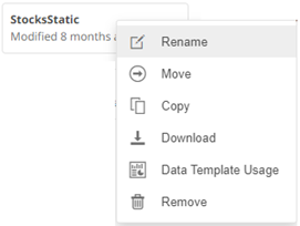 1. On the List of Grid view, right-click on a data template then select Rename on the context menu.