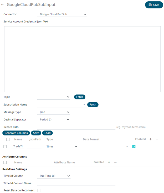 1. In the New Data Source page, select Input > Google Cloud PubSub in the Connector drop-down list.