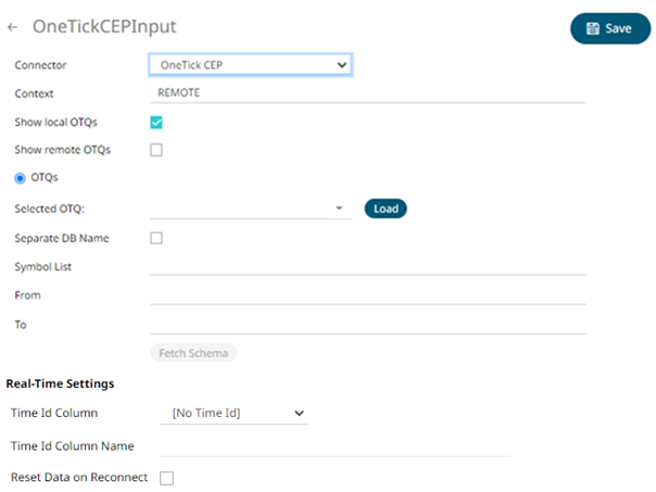 1.     In the New Data Source page, select Input > OneTick CEP in the Connector drop-down list.