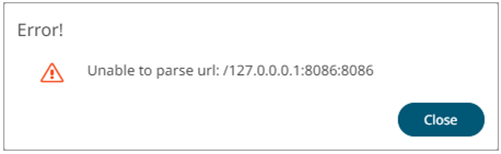 Click Close and fix the connection error.