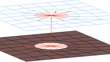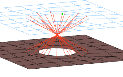 project and connect to the nodes of the adjoining shell elements that form the hole, and
