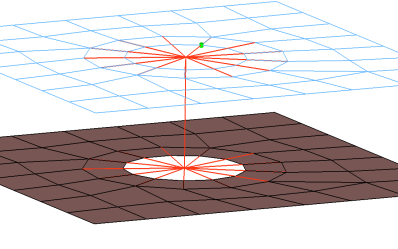 project and connect to the nodes of the adjoining elements, forming the hole and also
