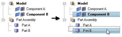 Reorganize part assemblies, parts, and components in the Part Browser.