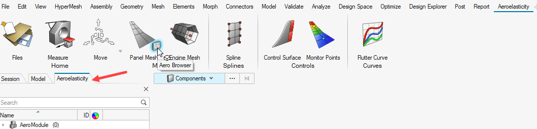 The Aeroelasticity Browser is useful for upcoming tasks in this tutorial.