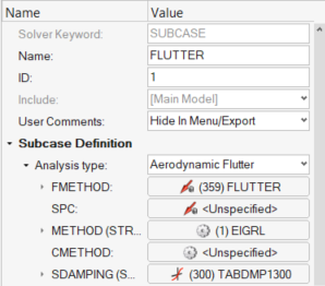 In this step, the previously created Bulk Data Entries are referenced in the Flutter Analysis subcase.