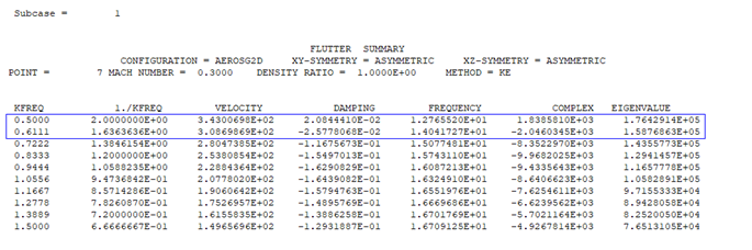 The output of flutter analysis can be postprocessed in the form of Velocity-Damping (V-g) and Velocity-Frequency (V-f) curves. PARAM, VREF can be used to convert the output velocities from flutter analysis to different unit systems.