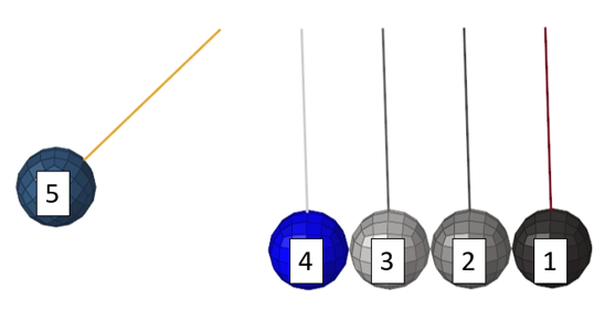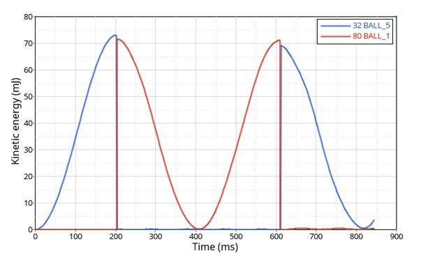 Figure 4. Kinetic Energy Transfer between Ball 5 and Ball 1