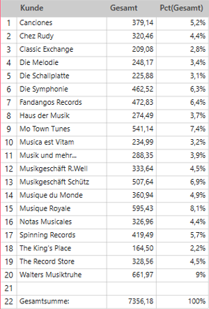 Im Vergleich hierzu, fasst eine Gesamtsummenzeile Messwertfelder zusammen.