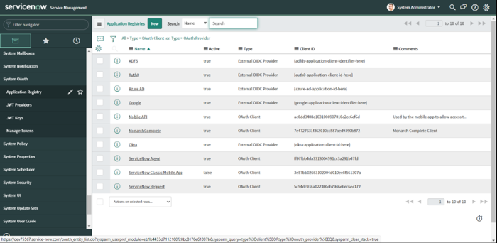 Klicken Sie im Navigator auf System OAuth -> Anwendungsregistrierung.