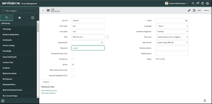 Die folgenden Schritte zeigen, wie Sie einen Testbenutzer für ServiceNow erstellen. Diese Schritte basieren auf dem Abschnitt Vor der Authentifizierung des Leitfadens für den Einstieg von CData: http://cdn.cdata.com/help/BNF/odbc/pg_connectiono.htm.