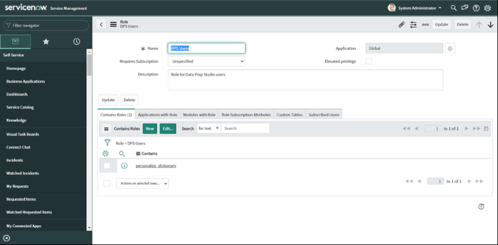Fügen Sie die Rolle personalize_dictionary der erforderlichen Rolle hinzu: