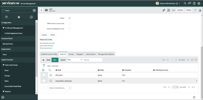 Beachten Sie bitte, dass die Rolle personalize_dictionary automatisch als übernommene Rolle mit eingeschlossen wird: