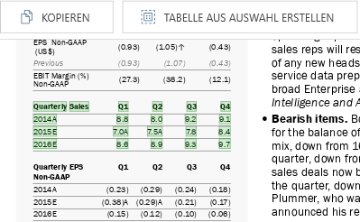 Sie können den Kopfzeilentext sogar auswählen, wenn sich Leerstellen oder anderer Text zwischen der Tabelle und der betreffenden Kopfzeile befinden.