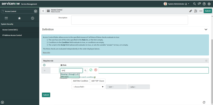 Proceed to the Access Control List (ACL) to define the ACL for the role.