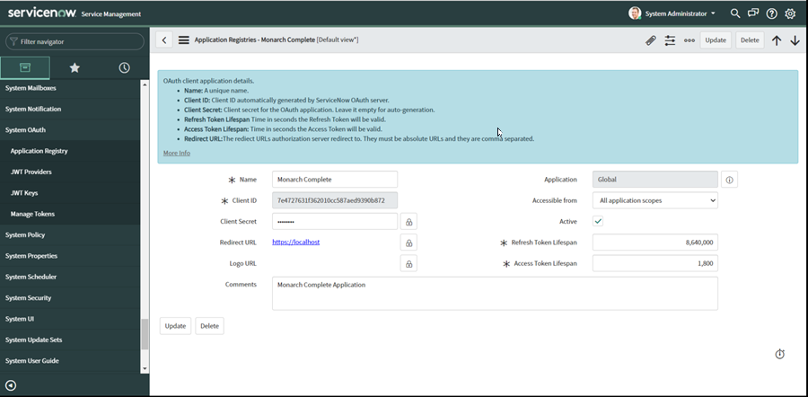 IMPORTANT: For the connection to work in Monarch Complete, the redirect URL must be set to https:/localhost: