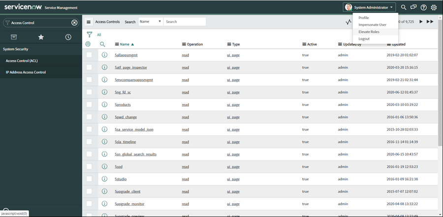 Select the System Administrator or user icon at the user menu located on the upper right of the page, and then select Elevate Role: