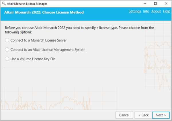 When Nalpeiron licensing is disabled, the option to license Monarch using an activation code no longer displays in the Choose License Method screen of the Monarch License Manager.