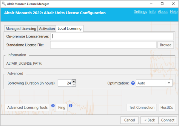 Select the Local Licensing tab in the Altair Units License Configuration screen.