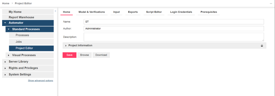 Under Standard Processes in the Navigation Tree, click Processes, and create a new Standard Process (see Adding a Process). Add the project you created in Step 1.