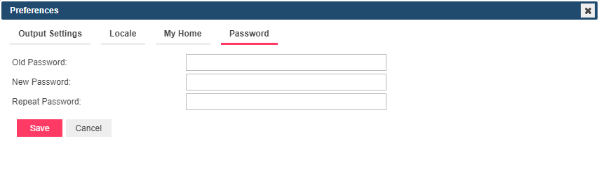Click Preferences in the upper right corner of the page, to display the Output Settings page.