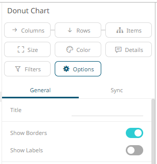 The donut chart settings pane is displayed after clicking the Options  button.