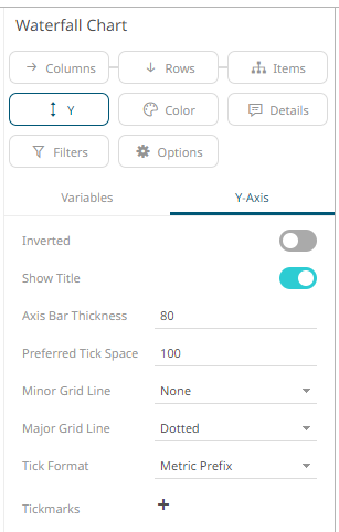 Other visualization-specific properties can be set by clicking on the Y-Axis variable drop area and then selecting the Y-Axis tab: