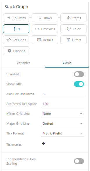 Other visualization-specific properties can be set by clicking on the Y-Axis variable drop area and then selecting the Y-Axis tab: