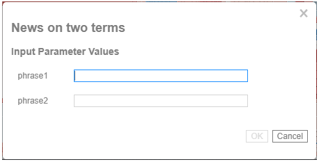Both fields are enabled when an interactive parameter (i.e., $Interactive) is selected in the Value Source drop-down list. Typically, interactive parameters are used to pass data back to data repositories or external systems. When an action is executed which require an interactive parameter, an associated dialog box will be displayed. For example: