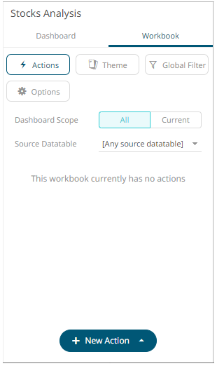 1. On the Dashboard and Workbook Settings pane, click the Workbook tab.