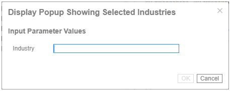 Both fields are enabled when an interactive parameter (i.e., $Interactive) is selected in the Value Source drop-down list. Typically, interactive parameters are used to pass data back to data repositories or external systems. When an action is executed which require an interactive parameter, an associated dialog box will be displayed. For example: