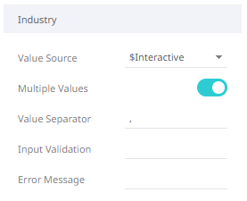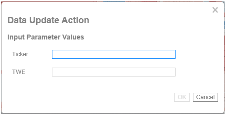 Both fields are enabled when an interactive parameter (i.e., $Interactive) is selected in the Value Source drop-down list. Typically, interactive parameters are used to pass data back to data repositories or external systems. When an action is executed which require an interactive parameter, an associated dialog box will be displayed. For example: