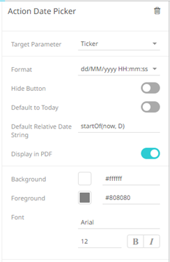 The Action Date Picker allows the entry of a Date/Time parameter.