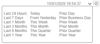 · The Default Relative Date will be used if the dashboard parameter is null/empty. · The relative Date/Time string is case sensitive. · You can also opt to select from a pre-populated date ranges: