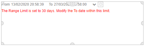 For example: “The Range Limit is set to 30 days. Modify the To date within this limit.”