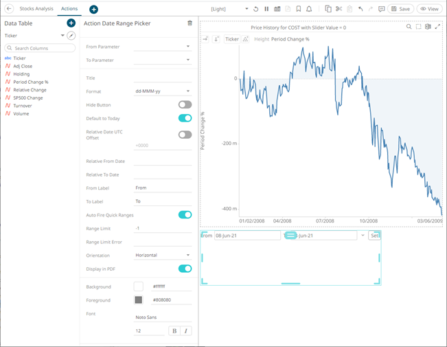 Adding an Action Date Range Picker
