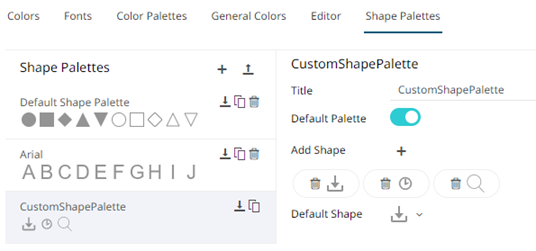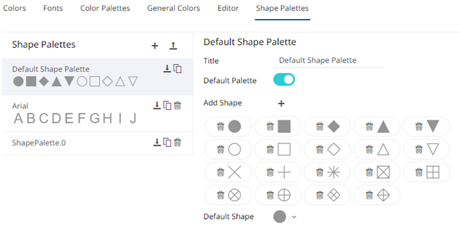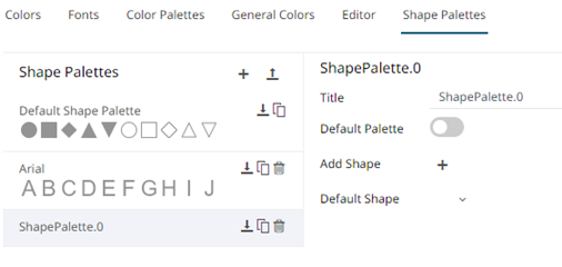 The new shape palette is available in the Shape Palette drop-down list in the Shape variable when the workbook theme, where it is added, is used (i.e., Light).