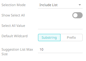 The primary use case of the Include List selection mode is to handle columns with large amounts of values. To avoid having to fetch and set the parameter to every value in the column when selecting all items, the select all value should be configured such that the parameterized query returns all items.