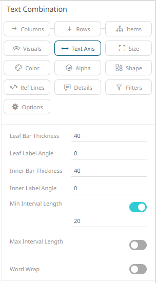 1. Click on the Text Axis variable drop area of the Text Combination graph. The Text Axis Settings pane displays.