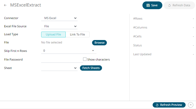 1. On the New Data Extract page, select MS Excel in the Connector drop-down list.