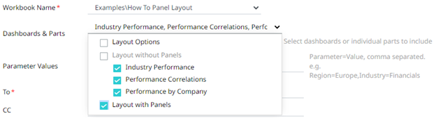 6. You can also opt to enter the Parameter Values that will be added as parameters to the subject line of emails or as dashboard values in the MS Excel file.