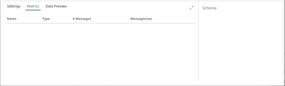 Displays the throughput of the selected nodes (total and current message rates) in the Metrics panel. When the application is running, the metrics data are refreshed.